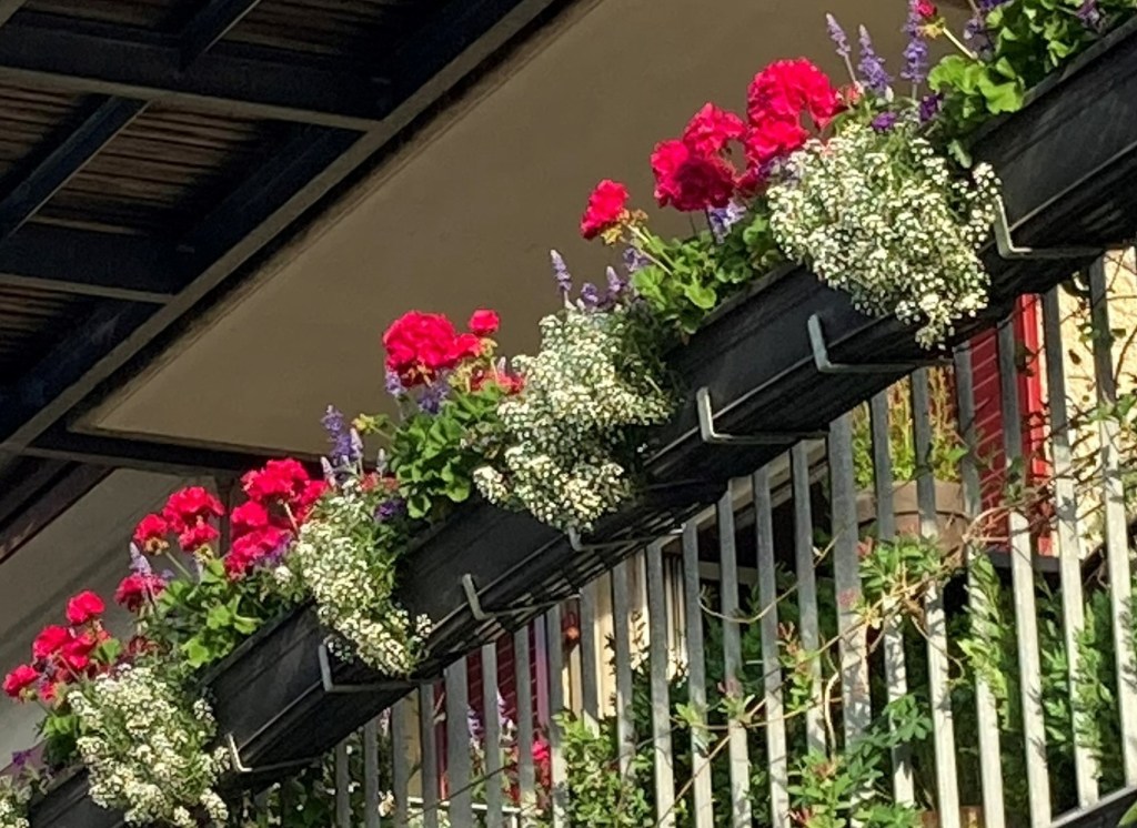 Yesterday I planted a last batch of sweet alyssum on my balcony. Every scrap of space in my pots and boxes is filled. From now until the end of October, I can sit back, water, and watch the flowers grow.