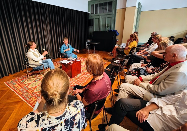 A Fondness for Truth is now officially launched into the world! The Münstergass bookstore co-owners Susanne Bühler and Monika Steiner sponsored the launch, which was held in Bern’s PROGR (short for Progymnasium), a former school building that has been turned into an artists’ cooperative and cultural center. In front of an audience of fifty, my friend and fellow writer Clare O’Dea* asked me questions about my books and writing process. Afterward, I read a few pages from the new mystery and took audience questions, and then people enjoyed fancy finger food and wine while I signed their books.
