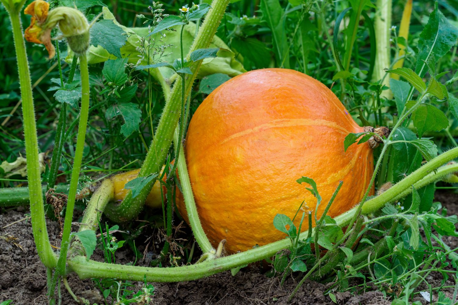 Hokkaido,Pumpkin,In,Garden.,Growing,Hokkaido,Pumpkin,On,A,Vegetable